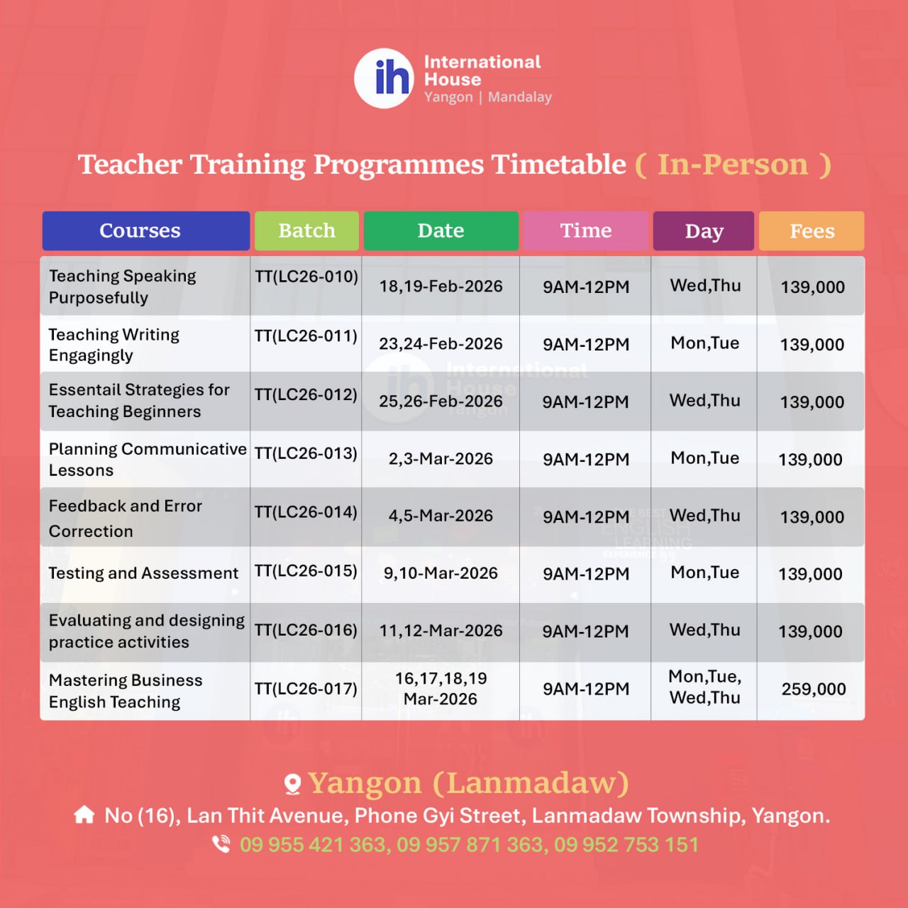 Teacher Training Programme Schedules
